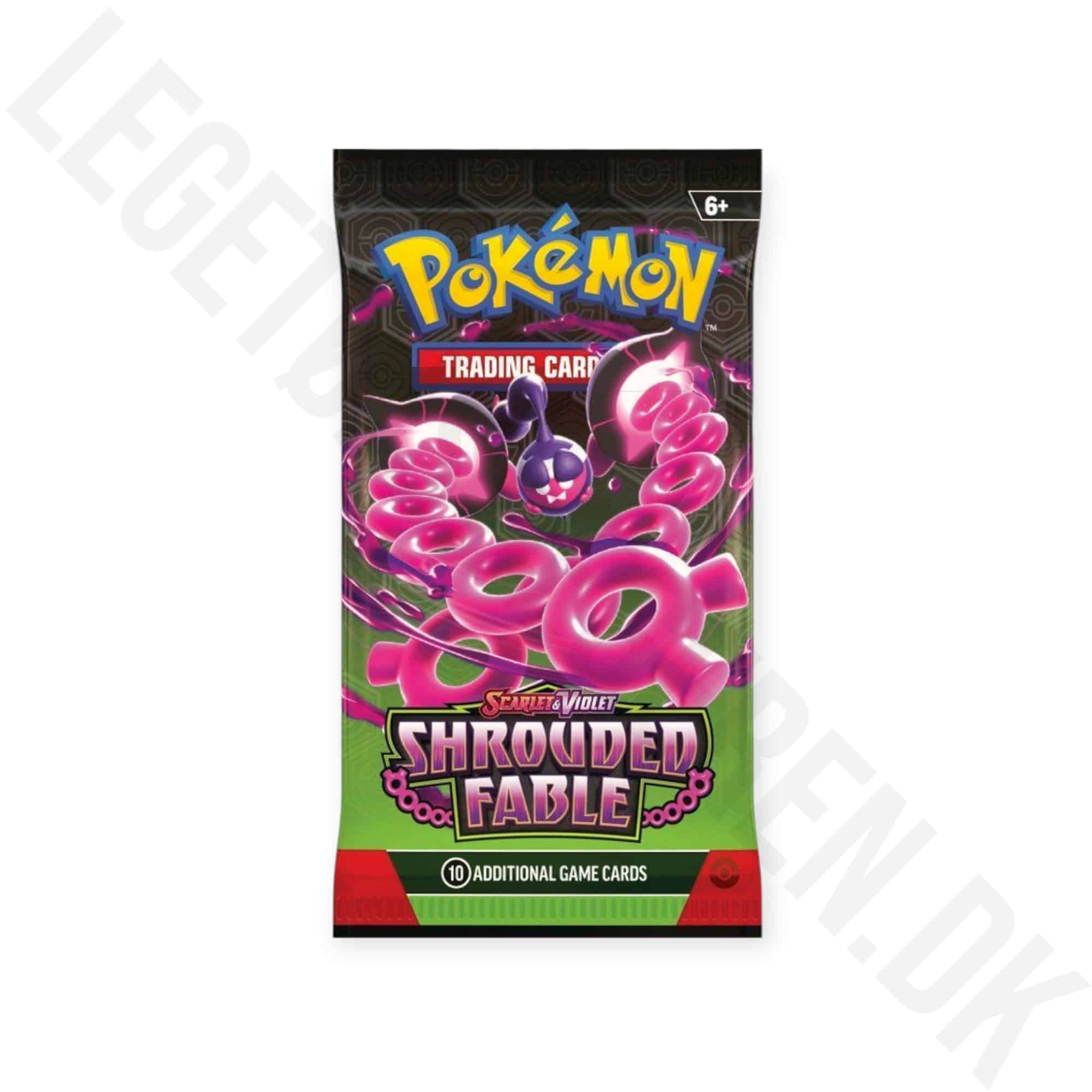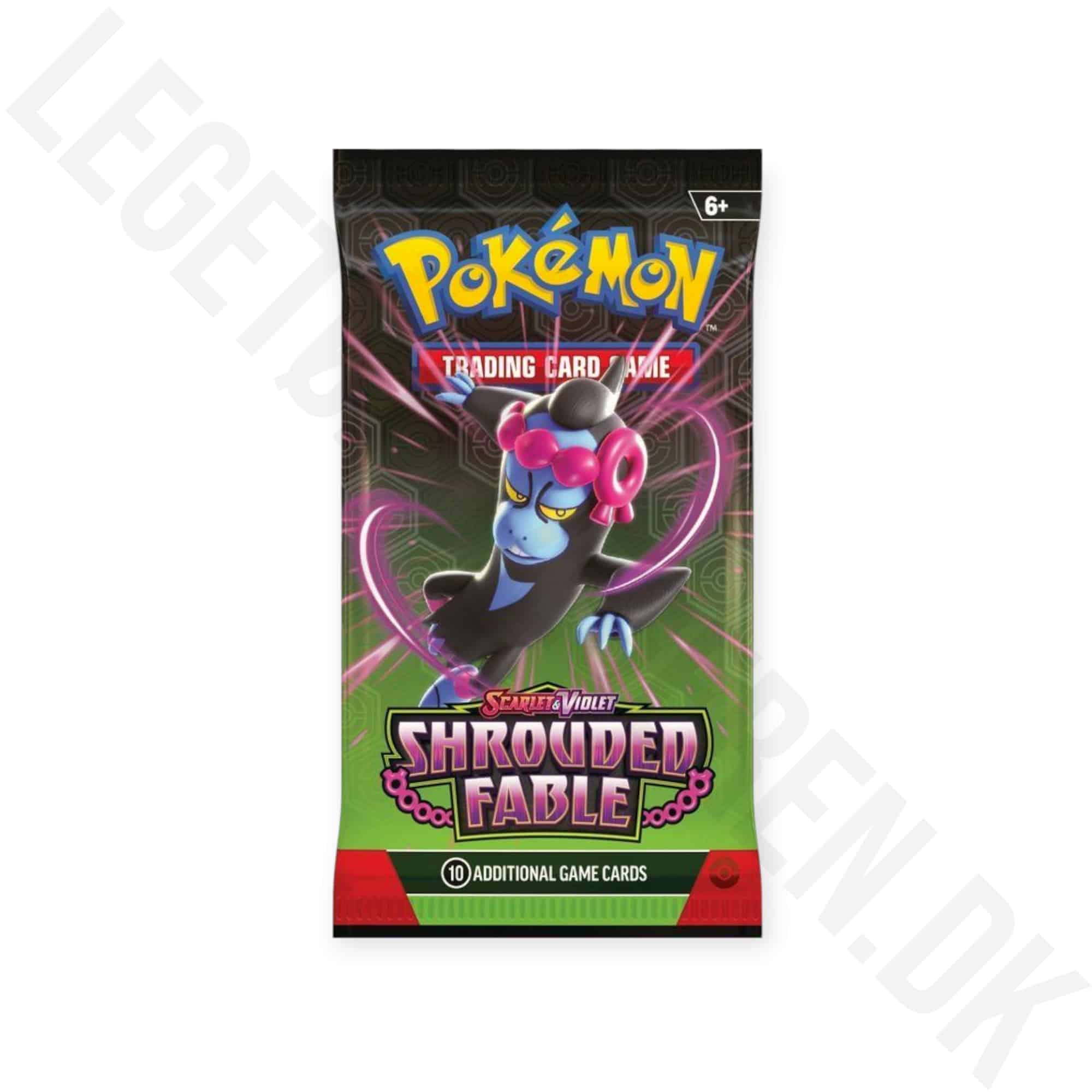 1 stk. Booster pakke som indeholder 10 stk. Pokemon kort fra serien SHROUDED FABLE. Og et kodekort til TCG online. OBS. De levers med tilfældigt motiv på booster pakkerne.